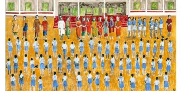 Image : Rentrée du matin à l’Ecole Vellai Thamarai – Virginie Roux-Cassé 2021